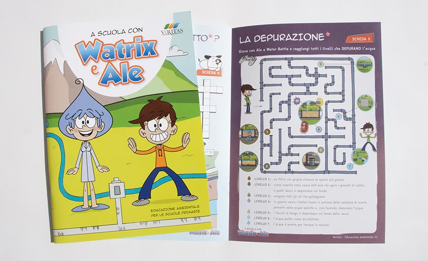 Affrontare il ciclo idrico integrato significa accompagnare i bambini e le bambine alla scoperta di come l’acqua viene raccolta, trattata, distribuita, utilizzata e poi depurata per tornare infine nell’ambiente. È un percorso che avvicina alla comprensione di alcuni processi fondamentali che avvengono nel nostro territorio e porta a riflettere sull’importanza dell’acqua come risorsa preziosa, ma limitata.